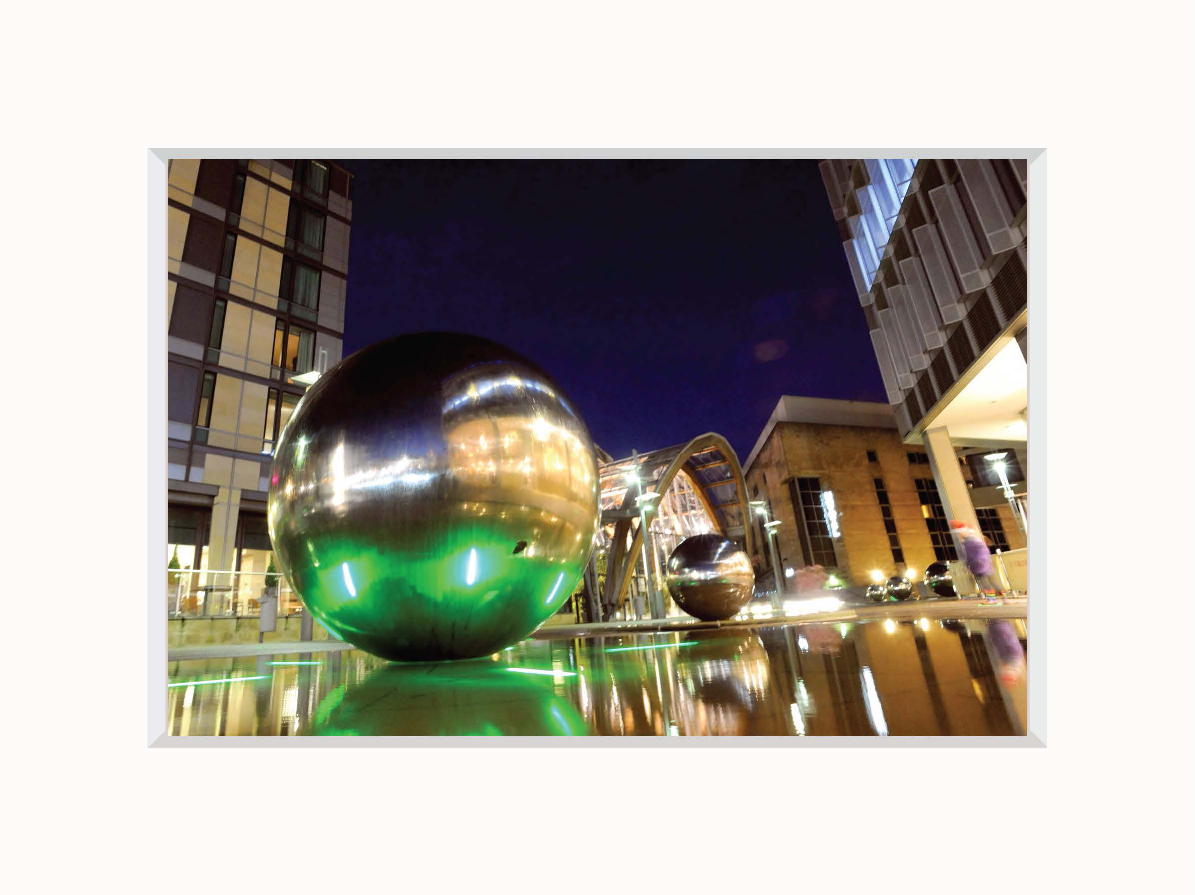 Representative of the excellent regeneration of the city centre, the instantly recognisable ‘giant ball-bearings’ have become something of an advert for modern day Sheffield. This 8×12 Giclée print is mounted in a 12×16 inch gallery standard mount, placed in a cello bag and ready to frame.